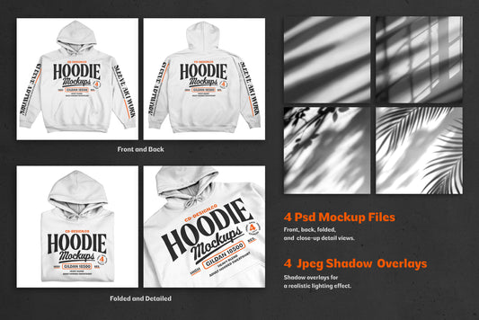 Hoodie Mockup Bundle with Shadow Overlays