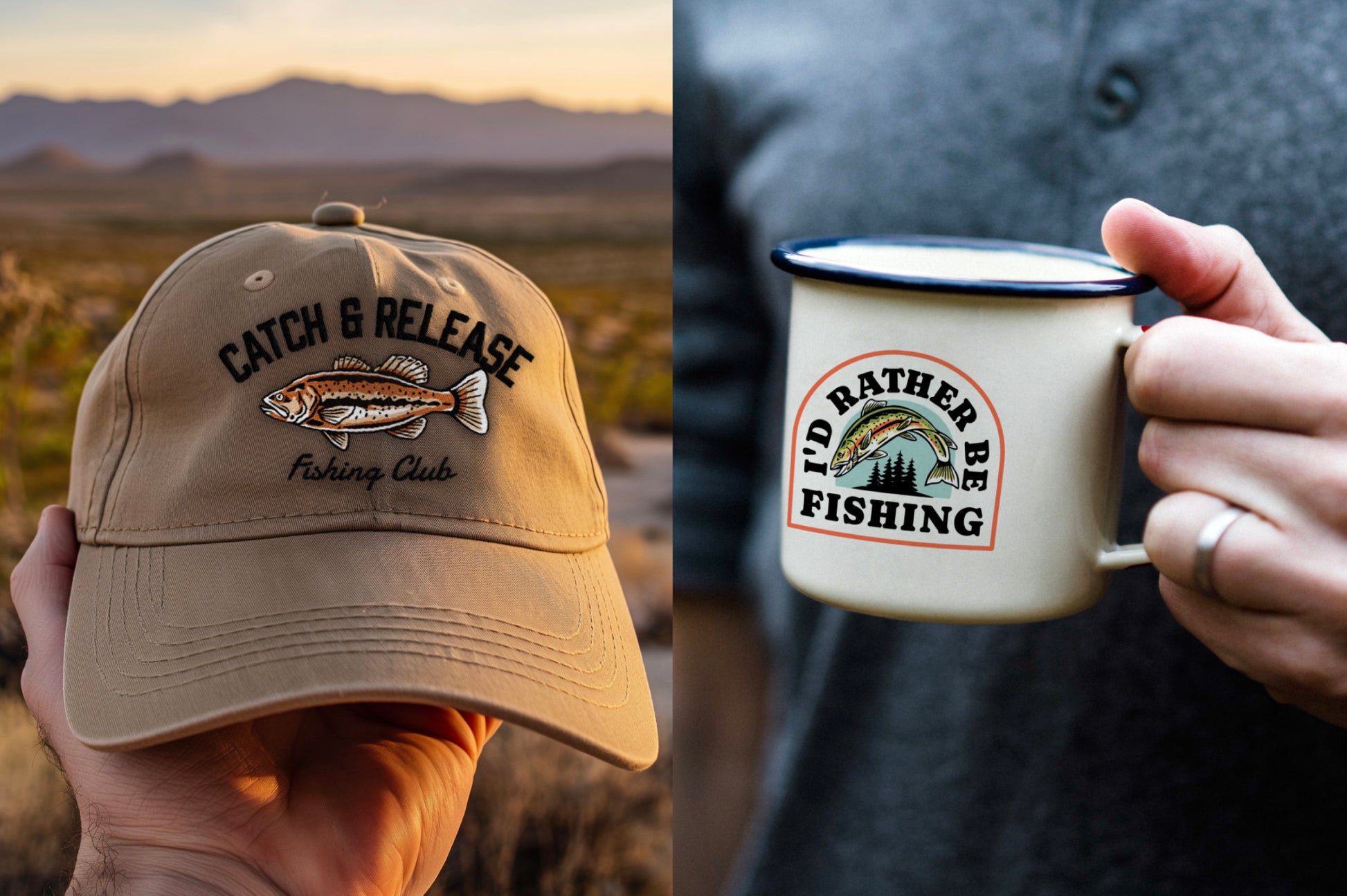 A detailed collection of vintage-style fishing designs and illustrations. These fully customizable designs, featuring editable text, are perfect for fishing-themed tees, hoodies, mugs, hats, stickers, and other products.