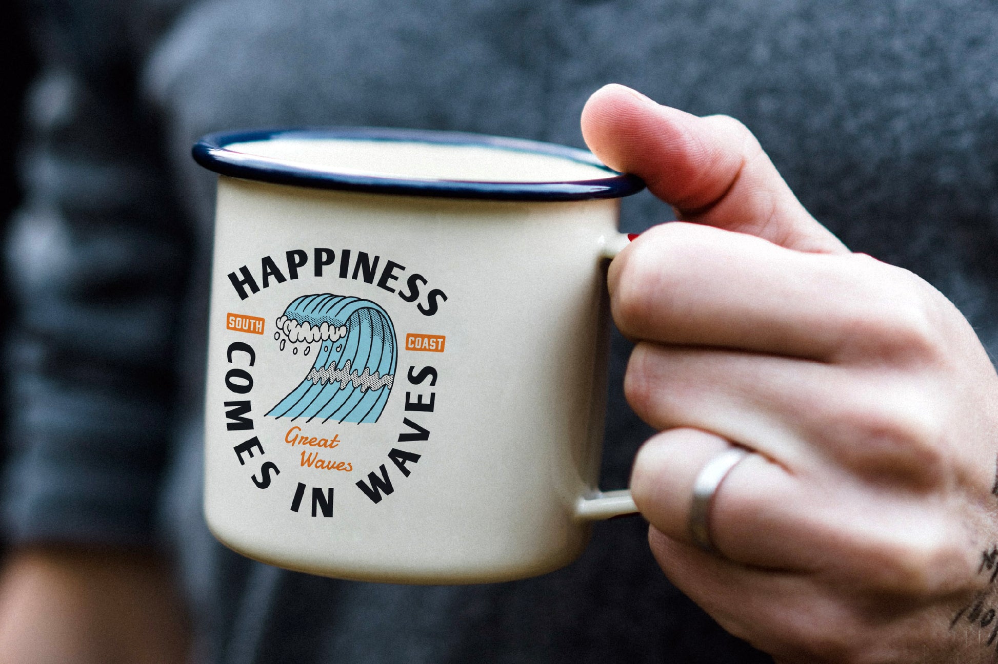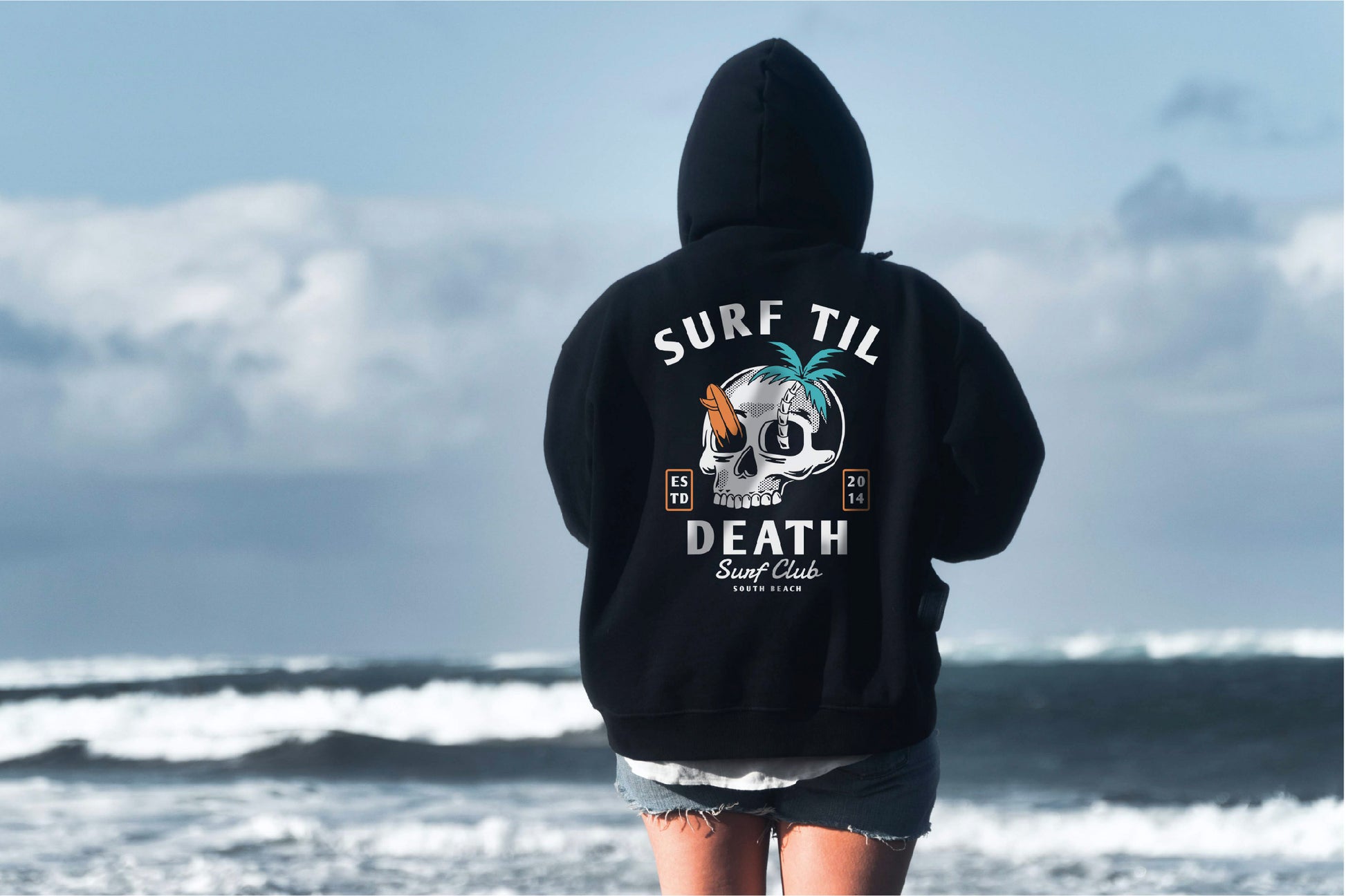 Set of 6 fully editable outdoor surfing prints. with editable fonts that can be customized for t-shirt prints, posters, or mugs.